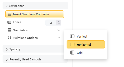 Or you can expand the Swimlane controls on your SmartPanel and pick the number of lanes and orientation before clicking Insert Swimlane Container.