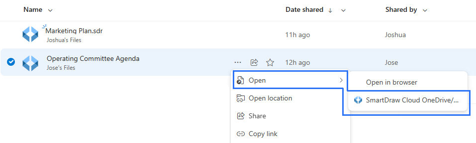 Alternatively, your team can access shared SmartDraw documents from OneDrive directly.