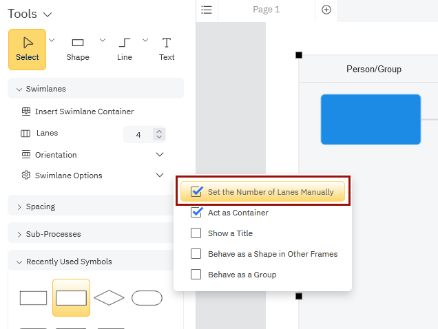First, in the Swimlane Options drop-down menu, make sure to check Set the Number of Lanes Manually.