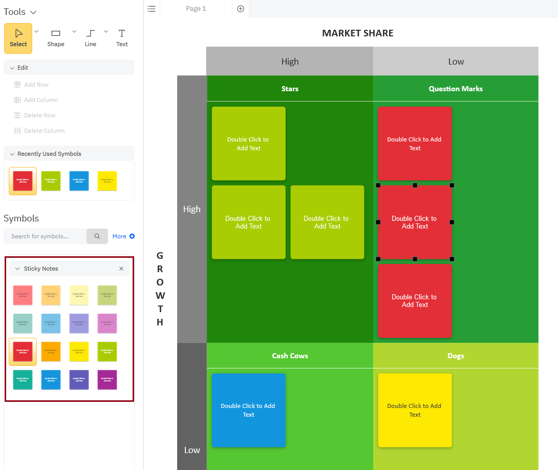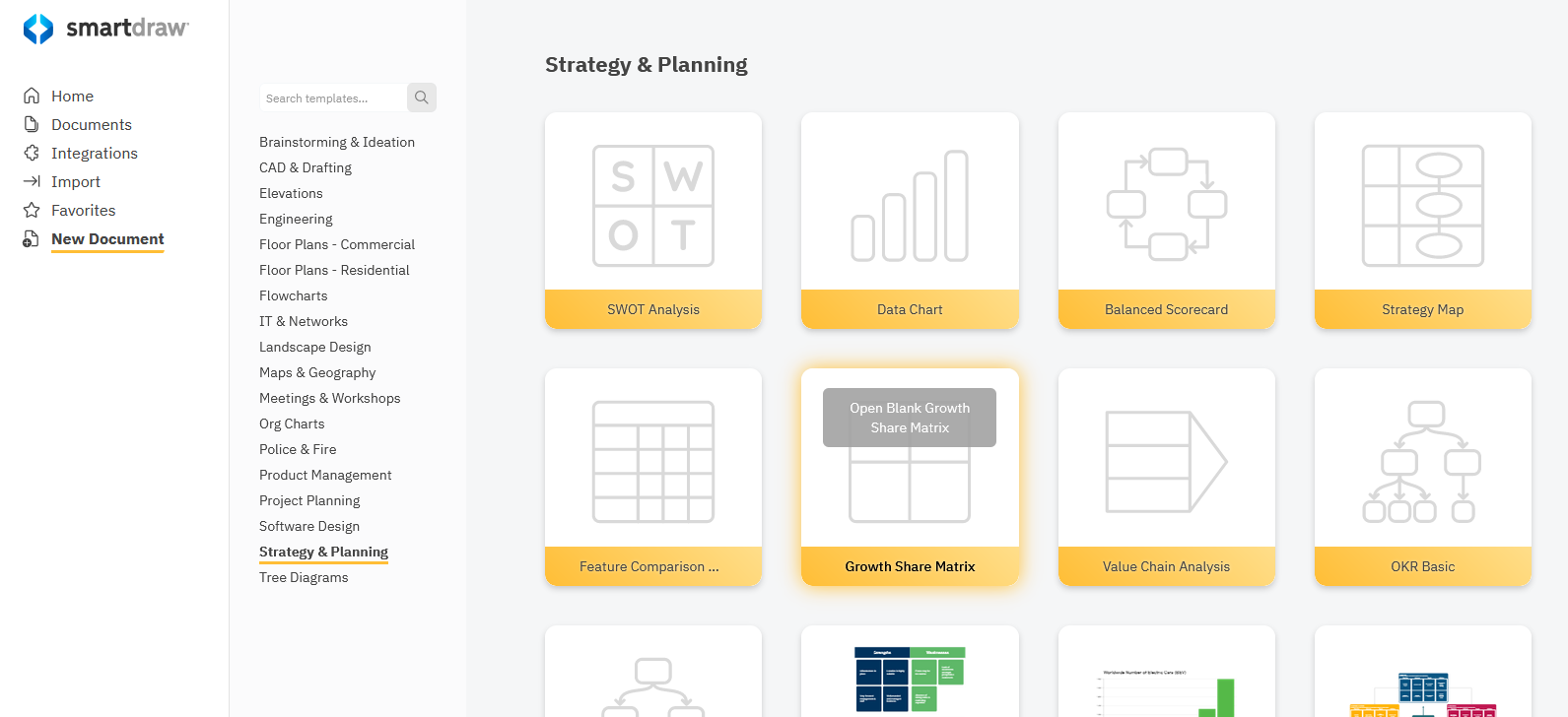 Select Growth-Share Matrix from the Strategy & Planning category under New Document on the dashboard.