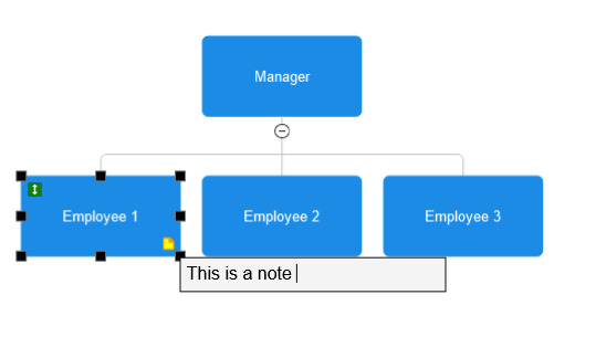 Enter your note in the text field that appears below the object and click elsewhere in the workspace when done to save changes. You can see and edit your note by clicking on the yellow sticky note in the lower right corner of the shape.