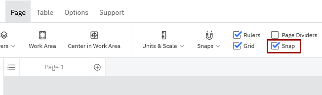 The Snaps tool is found on the Page tab. Snaps allows lines and shapes to be snapped to the nearest grid point as you draw.