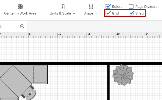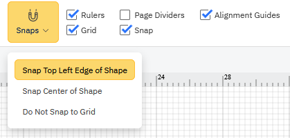 Choose how you would like objects in your visual to snap to the grid by selecting from the Snaps drop-down menu.