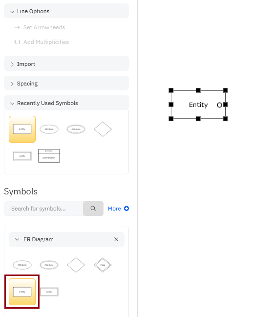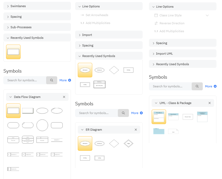 This menu is pre-populated with the most common symbols for the selected diagram type. The options will change over time to symbols you use, so you'll always have what you need at your fingertips.