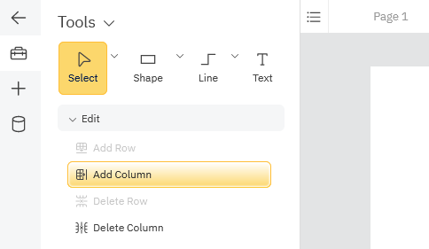 Add columns and rows to the diagram by choosing Add Column or Add Row from the Edit section of the SmartPanel. Similarly, delete columns and rows by selecting Delete Column or Delete Row.