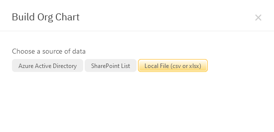 In the dialog that appears, you can choose to import your information from Azure Active Directory, Sharepoint, or a Local CSV file.