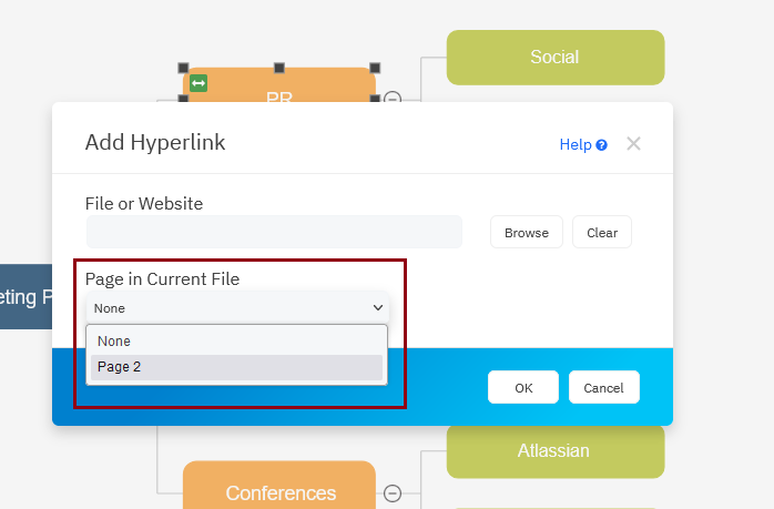 In the Add Hyperlink modal, select the page you're linking to in the Page in Current File drop down menu and click OK.