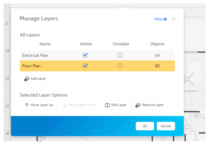 Layers separate your visual into parts, and are primarily used to keep items from interfering with each other. For example, you may want to separate a floor plan by stories. The first story of a house could be on one layer, and the second story on an additional layer.