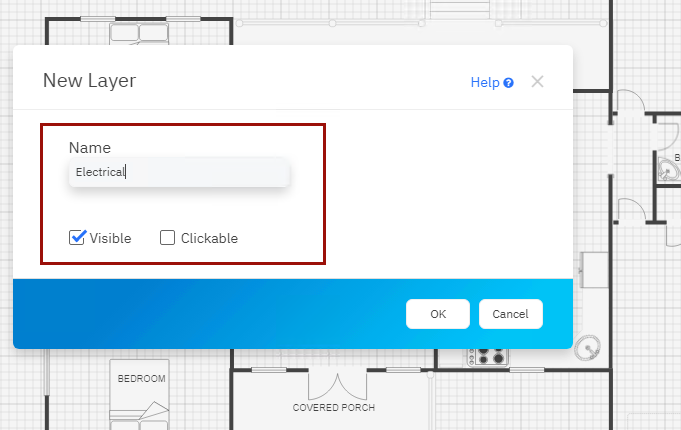Type the name of the new layer into the Name field, and select or deselect Visible and Clickable from the New Layer dialog box.