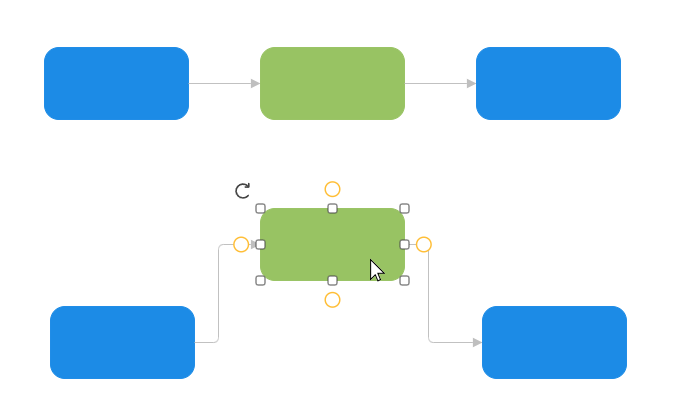 When a shape is connected to other shapes via lines, when you move the shape, the lines will move with it.