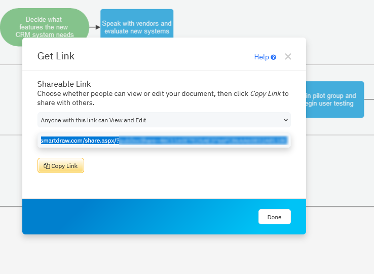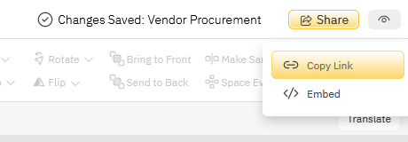 You can share your diagram with others even if they don't own SmartDraw by sending them a link. To get the link, click the Share button in the upper right corner of the UI.