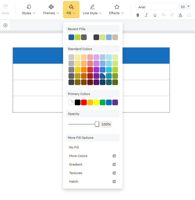 To change the color or style of the dividers between cells, click on the divider and use the Line Style menu to change color or thickness.