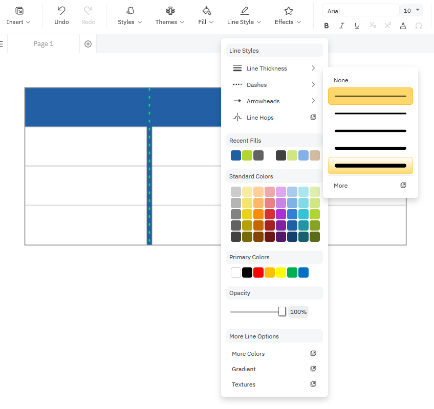 Once your dividers are selected, you can use the Line Style options to change line thickness, color, and style.
