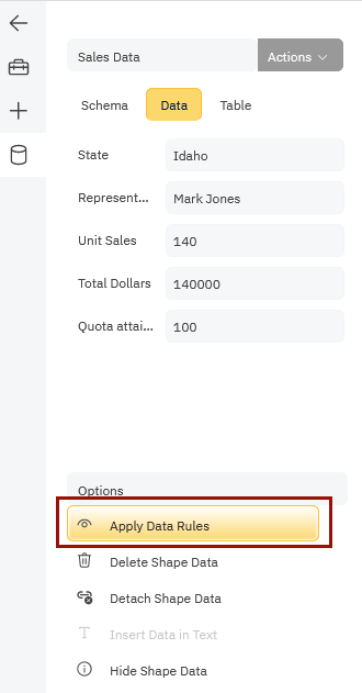 If you want to remove a rule from a shape, select the shape and under Apply Data Rules select the name of the rule you want to uncouple to remove the check mark.
