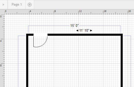 Moving the placement of 0,0 allows you to place shapes and walls at 0,0 and still have room to display dimensions and other information.