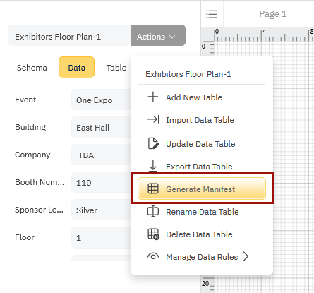 First, make sure you're in data mode by clicking on the Data icon in the Left Bar. Next, click on Actions and choose Generate Manifest.
