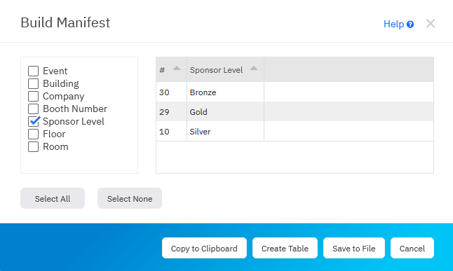 You can choose which items and what data to include in your manifest by clicking on the check-boxes on the list presented. You'll see a preview of your data to the right.