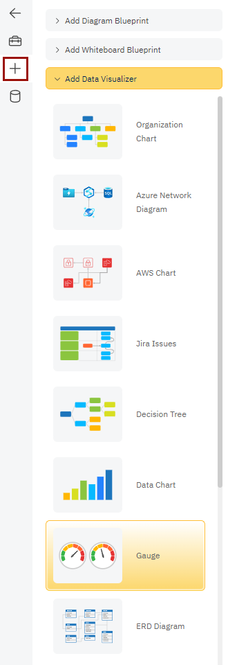 First, click on the Plus icon to switch your SmartPanel to the Insert Content view. Choose Add Data Visualizer and then click on Gauge.