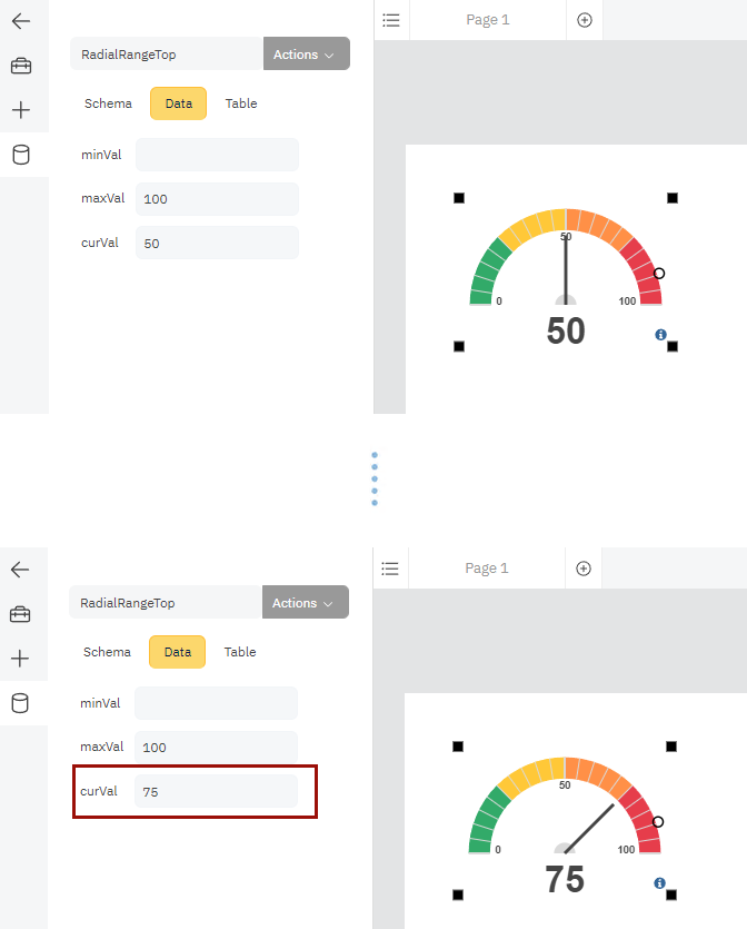You can update the current value, change the max or min value, even update the type of gauge displayed.