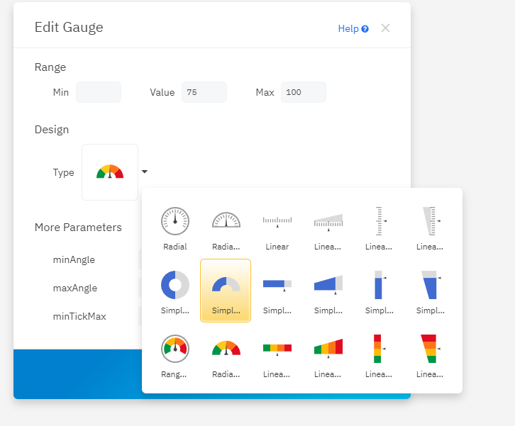 You can easily switch between gauge types even after adding a gauge to your page. Click the Type drop-down and select a new type of gauge and click OK to apply your changes.