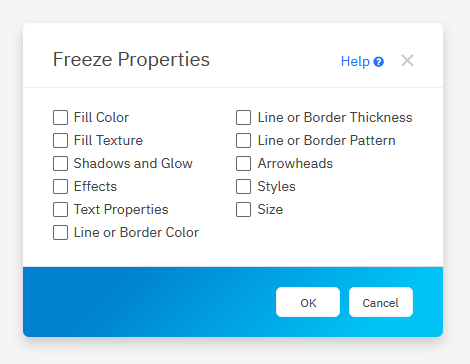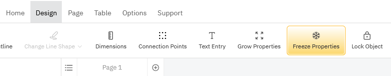 In the Design tab, click on Freeze Properties to freeze or unfreeze properties of a shape.