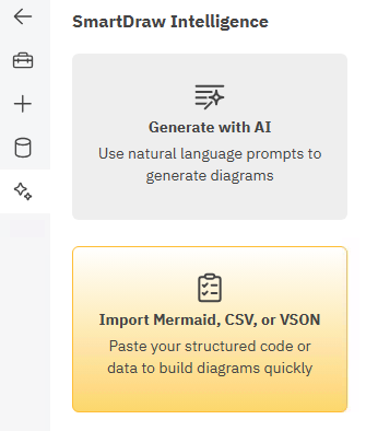 In the SmartDraw Intelligence tab, click the Import Mermaid, CSV, or VSON option.