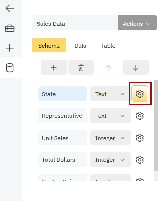 The gears icon next to each field will let you further restrict the data type to some preset values you define.