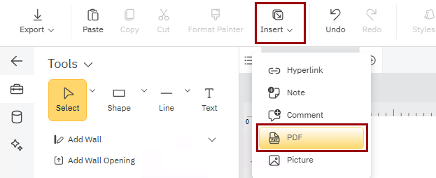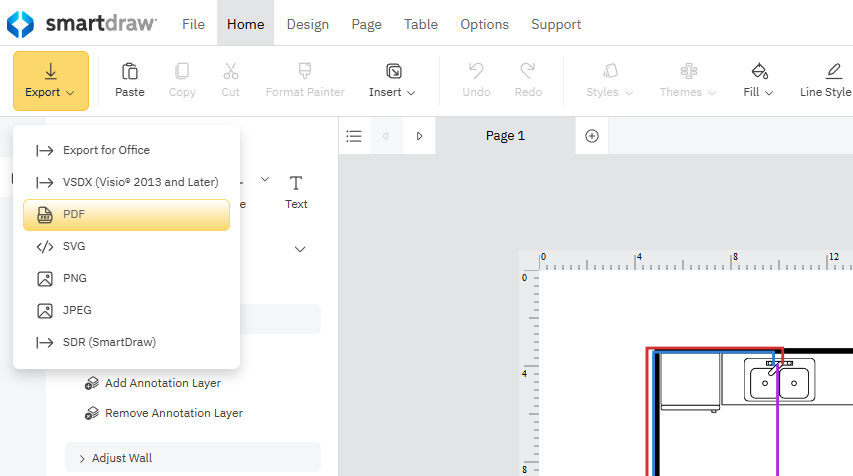 Already have a floor plan or existing blueprint? You can import a PDF or image into SmartDraw and scale it. Click Insert and choose PDF to bring in an existing plan as your foundation. You’ll be able to scale it and layer your plumbing drawing on top.