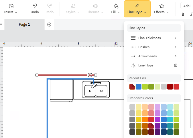 Recolor the line using the Line Style menu.