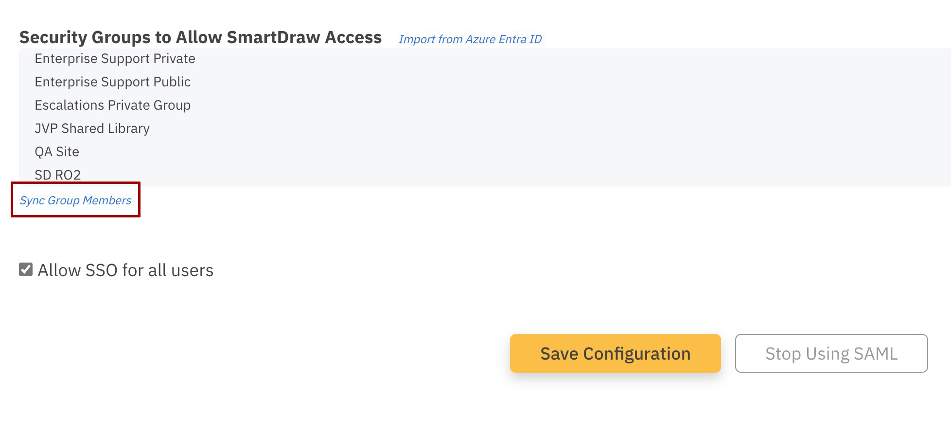 Use this to synchronize SmartDraw users with your current Entra ID group memberships and SSO configuration.