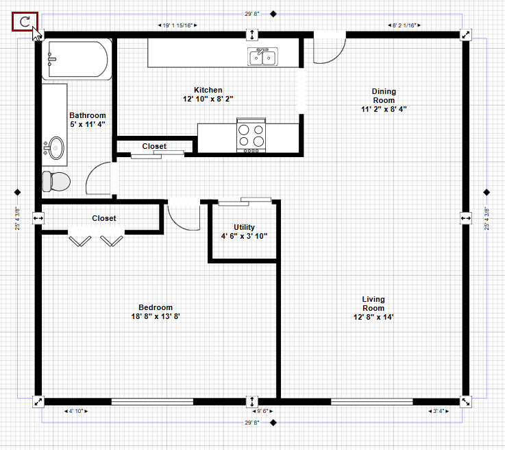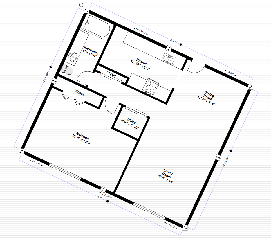 You can rotate your entire floor plan using its rotation handle located above the top left corner of your floor plan outline.