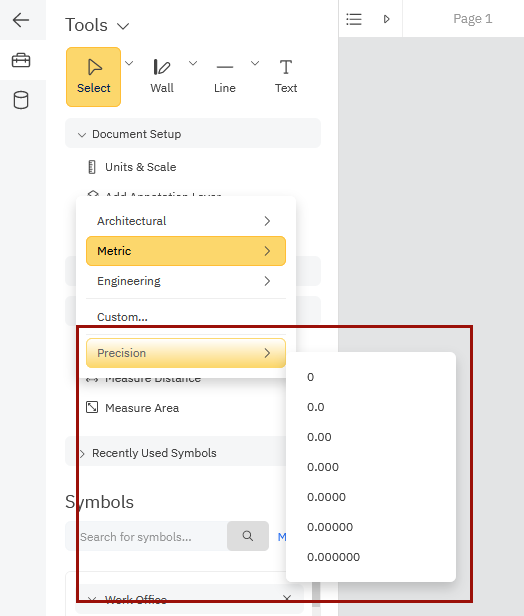 For metric scales, you can specify the number of decimal points you want. First, set your scale to a Metric option and then bring up the Precision drop-down to set your level of detail. The default is set to two decimal places, but you can specify up to 6 decimal places if you need to.